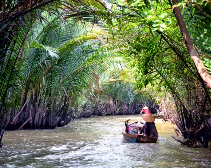Niet lang nadat u Ho Chi Minhstad heeft verlaten, merkt u dat het landschap begint te veranderen. Onderweg passeert u uitgestrekte groene rijstvelden en slingert u langs kleine riviertjes en kanalen die door het vlakke land kronkelen. U ziet vaak lokale boeren hun gewassen verzorgen terwijl waterbuffels langs de weg grazen, en kleine stalletjes aan de kant van de weg waar u wordt verleid met vers fruit.