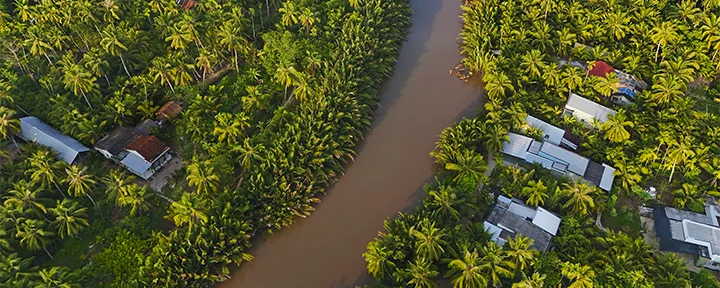 Na het ontbijt halen uw gids en chauffeur u op bij uw hotel en vertrekt u richting de weelderige Mekongdelta, een van de meest vruchtbare en levendige regio’s van Vietnam. De Mekongrivier ontspringt in de Himalaya en legt een reis van zo’n 4.500 km af door zes landen, voordat zij zich vertakt in de uitgestrekte delta ten zuiden van Ho Chi Minhstad. De delta beslaat ongeveer 40.000 vierkante kilometer en hoeveel van het gebied onder water staat, is afhankelijk van de hevigheid van het regenseizoen en de wisseling van de seizoenen.