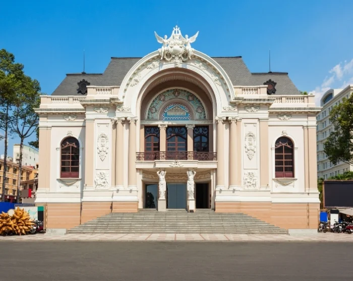 U passeert het Saigon Opera House, een indrukwekkend architectonisch meesterwerk uit 1901 dat uitgroeide tot een levendig symbool van het culturele erfgoed van de stad. Door de jaren heen deed het gebouw dienst als van alles: van schuilkelder tijdens luchtaanvallen tot het onderkomen van het Zuid-Vietnamese parlement, wat bijdraagt aan de bijzondere historie.