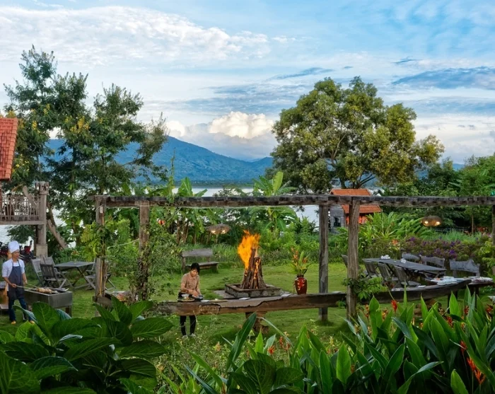 Terug in het Lak Tented Camp staat er een sfeervolle avond op het programma. Laat u betoveren door de traditionele gongmuziek, proef de lokale rijstwijn (Ruou Can), en geniet van een heerlijke BBQ bij het kampvuur voordat u zich terugtrekt voor de nacht.