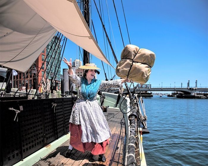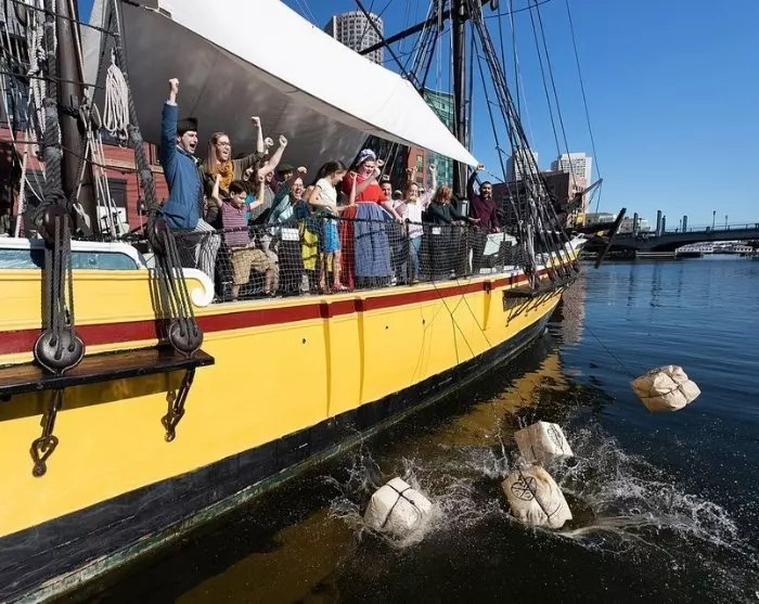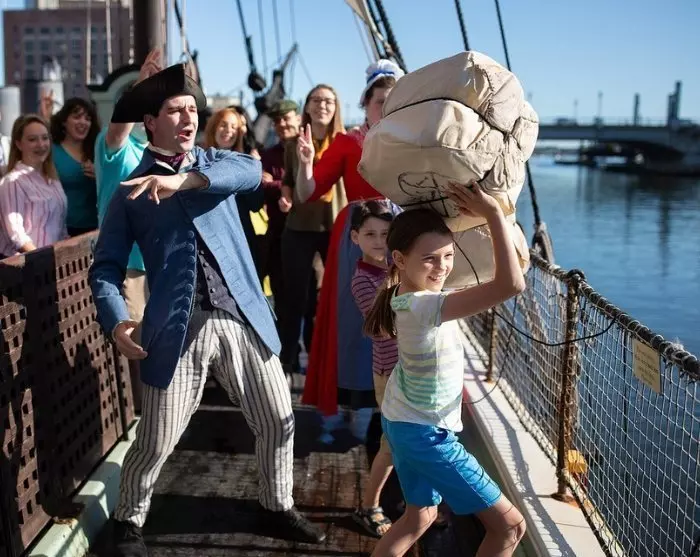 Het museum toont replica’s van 18e-eeuwse zeilschepen en je krijgt de kans om deel te nemen aan de traditie van het overboord gooien van thee, net zoals de kolonisten deden.