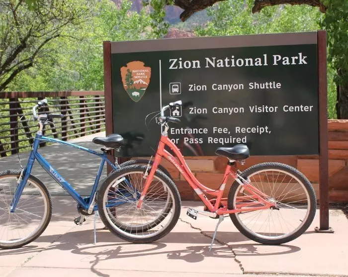 Van maart tot november zijn shuttlebussen de enige toegestane voertuigen op de populaire Scenic Drive en daardoor is fietsen hier comfortabel en veilig. De shuttlebussen passeren de fietsers niet, tenzij de fietsers stoppen en één voet op de grond zetten. Indien nodig kan uw fiets op de voorkant van een shuttlebus worden geladen.