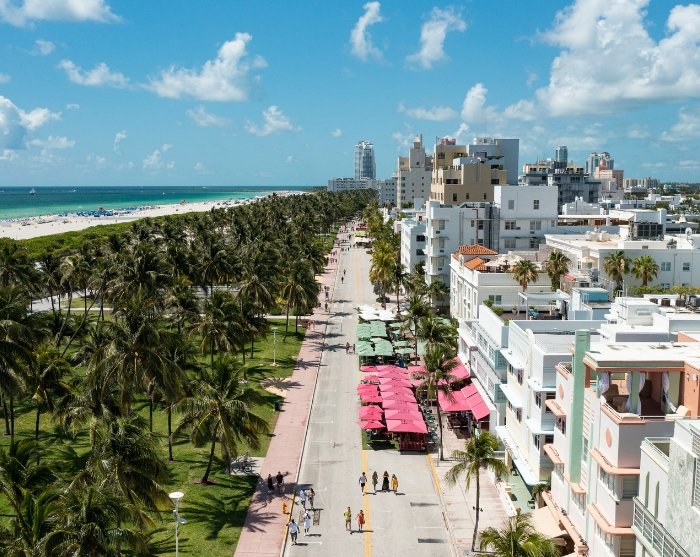 Het wordt sterk aanbevolen om over het bijna 13 kilometer lange verharde fietspad te fietsen, dat zich uitstrekt langs de Miami Beachwalk. Het biedt een prachtig uitzicht op de karakteristieke, pastelkleurige art-decohuizen van de stad aan de ene kant en de zee aan de andere kant. Het is niet ondenkbaar dat je onderweg wordt verleid tot een duik in de zee, of lunch in een van de vele kleine cafés.