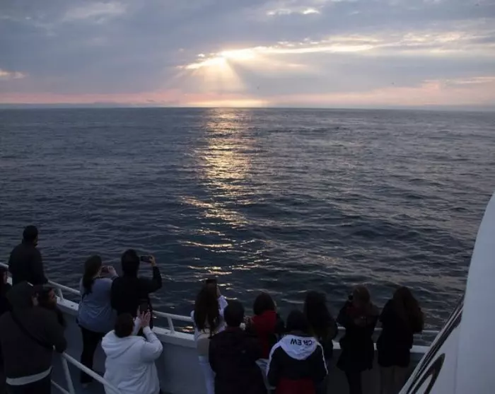 U gaat aan boord van een van de grootste boten in de Monterey-vloot, een boot van 110 voet. Hier kunt u buiten op het dek en ook binnen in de verwarmde lounges zitten. Aan boord kunt u ervoor kiezen om te upgraden naar het bovenste VIP-dek (tegen betaling – op basis van beschikbaarheid). Er zijn toiletten aan boord.