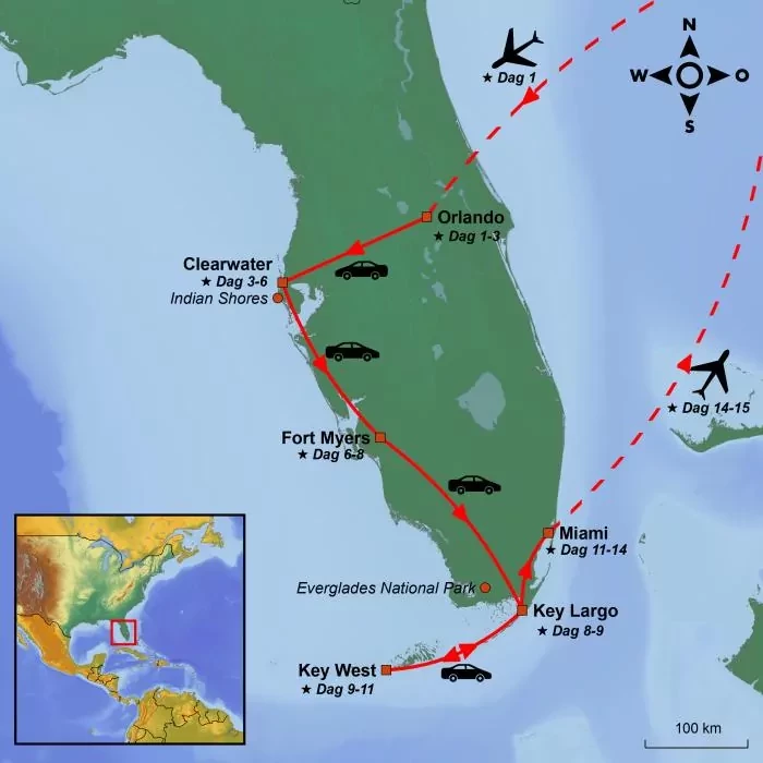 Het avontuur gaat verder naar de prachtige archipel, de Florida Keys, waar je zowel op Key Largo als Key West verblijft. Het bezoek geeft je een indruk van het leven op de kleine eilanden, die alles bieden: van snorkelen en vissen tot alle soorten watersporten. Key West is een culturele smeltkroes van Amerikaanse en Cubaanse cultuur, en je zult merken dat dit deel van de VS authentiek anders en meer ontspannen is, en dat het een blijvende indruk op je zal achterlaten.