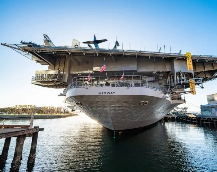 In San Diego Harbor kun je een bezoek brengen aan het vliegdekschip USS Midway, dat tegenwoordig dienstdoet als interactief museum. Hier krijg je inzicht in het leven aan boord van een vliegdekschip en kun je straaljagers van dichtbij bekijken. Hier is er ook een F-16 simulator waar je je innerlijke pilotendroom kunt uitleven.