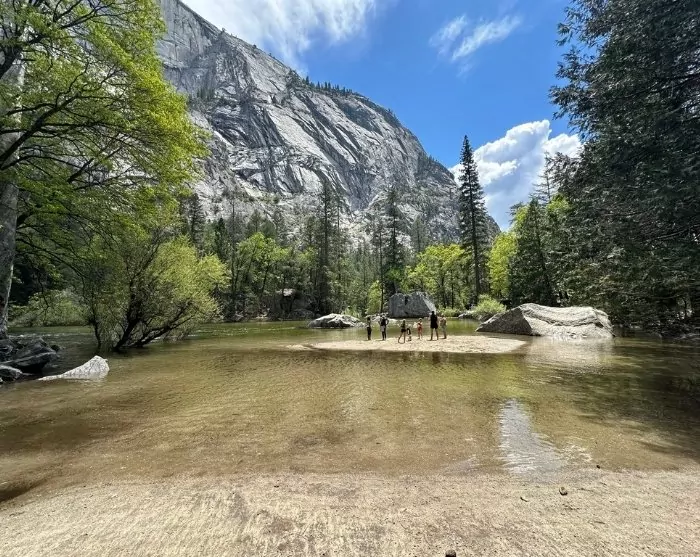 In Yosemite Valley is het ook mogelijk om een fiets te huren. Je kunt de verharde fietspaden gebruiken om van de ene waterval naar de volgende te rijden, terwijl je lekker geniet van het uitzicht op de enorme rotswanden en bomen om je heen. Een goede plek om van een snack te genieten is op het kleine stuk zand bij de Swinging Bridge Picnic Area, waar je uitzicht hebt op de waterval Yosemite Falls.