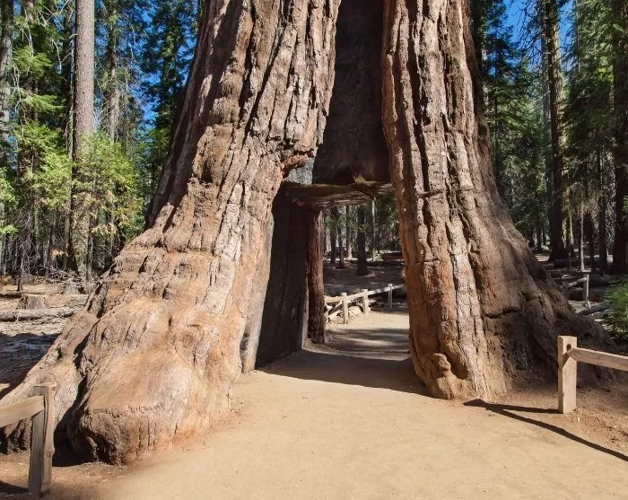 Wanneer je je hotel verlaat, moet je de GPS instellen om via Mariposa Grove te rijden. Hier vind je een bos met enkele van de grootste bomen ter wereld: de gigantische sequoiabomen, waar je gemakkelijk bij in de buurt kunt komen via de aangelegde paden (alleen ligt er sneeuw in de winter). Hier voel je je echt klein tussen de enorme bomen, en niet in de laatste plaats in de California Tunnel Tree, waar je doorheen kunt lopen.