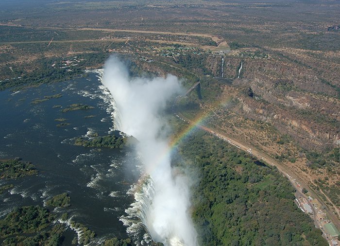We beloven u dat het alle geld waard is! Of de Victoriawatervallen de grootste waterval ter wereld zijn, hangt ervan af welke dimensie gemeten wordt. Het is niet de hoogste waterval ter wereld en evenmin de waterval waar de grootste hoeveelheid water per seconde naar beneden valt. Met een breedte van 1,7 km is het daarentegen absoluut de breedste waterval ter wereld, en daardoor een waterval die niet tot zijn recht komt als u het geheel vanaf de grond bekijkt.