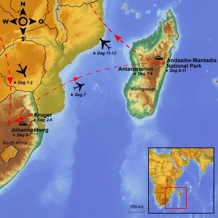 Vanuit het bekende Zuid-Afrika gaat de rondreis naar een onbekender gebied: Madagaskar. Hier ontmoet je koningen en koninginnen en kom je meer te weten over de rijke geschiedenis van het land, voordat je op zoek gaat naar maki’s, wandelende takken en kleurrijke kameleons in het Nationaal Park Andasibe-Mantadia.